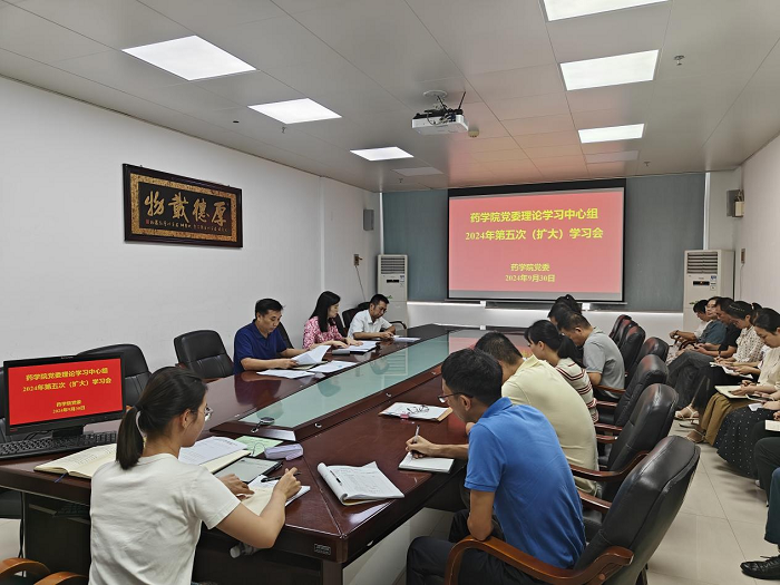 9月30日上午,药学院党委理论学习中心组召开2024年第五次(扩大)专题学习会,认真贯彻落实党的二十届三中全会精神,围绕深学细悟习近平总书记重要讲话和全会精神,扎实推进教育教学工作进行学习交流研讨。学院党委委员、学院领导、教工党支部书记、教研室主任、党外知识分子代表等三十余人参加了会议。会议由学院党委书记文秋林主持。