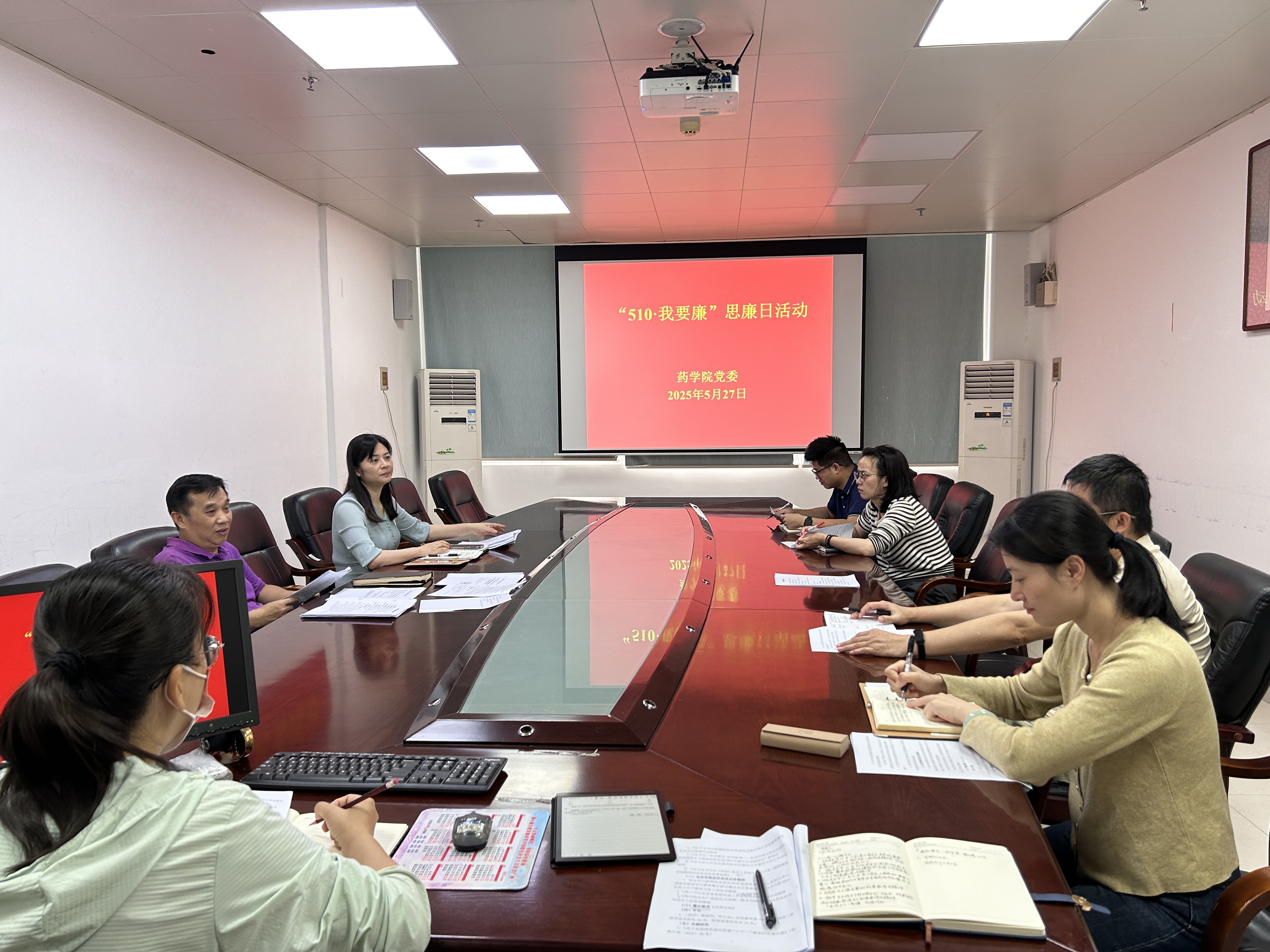 以学聚力,厚植廉洁文化。积极组织各党支部开展廉洁主题党日活动。无机天药中药学党支部到龙州红色教育基地和崇左市廉政教育展馆开展现场教学,药剂学党支部到学院“廉心药语”廉洁文化墙参观学习,药物分析党支部开展端午节前廉洁微党课等,同志们在活动中接受廉洁文化熏陶,廉洁意识进一步增强。