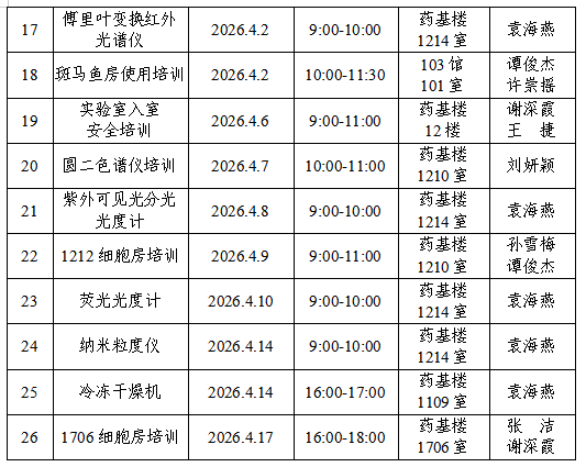 2026年3月-4月(具体各仪器培训时间详见下方日程表)