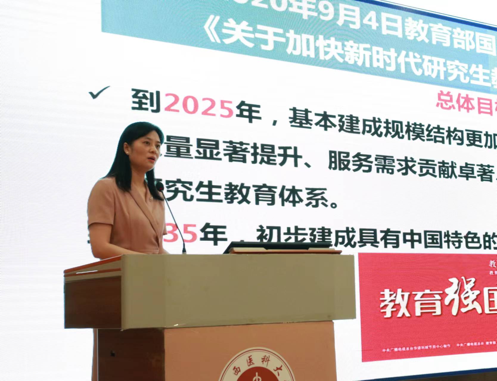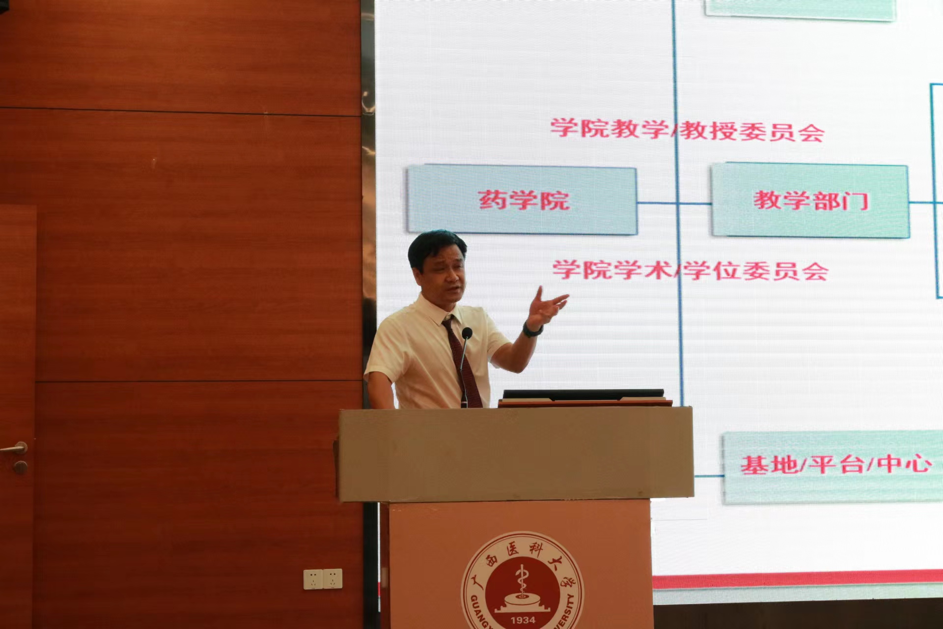 在入学专业教育专题培训中,药学院文秋林书记为新生做“青春献礼二十大,强国有我新征程”主题宣传教育培训。他鼓励新生要以积极的政治态度面对研究生生活,树立科技强国的理想。接着,阳洁院长对研究生培养过程做了详细讲解,着重强调培养研究生创新思维和专业能力。最后,韦锦斌院长给大家详细介绍了学院、学科发展特色及科研平台实力,同时,还告诫同学们要端正学术态度,遵守科研诚信,鼓励同学们继续深造。