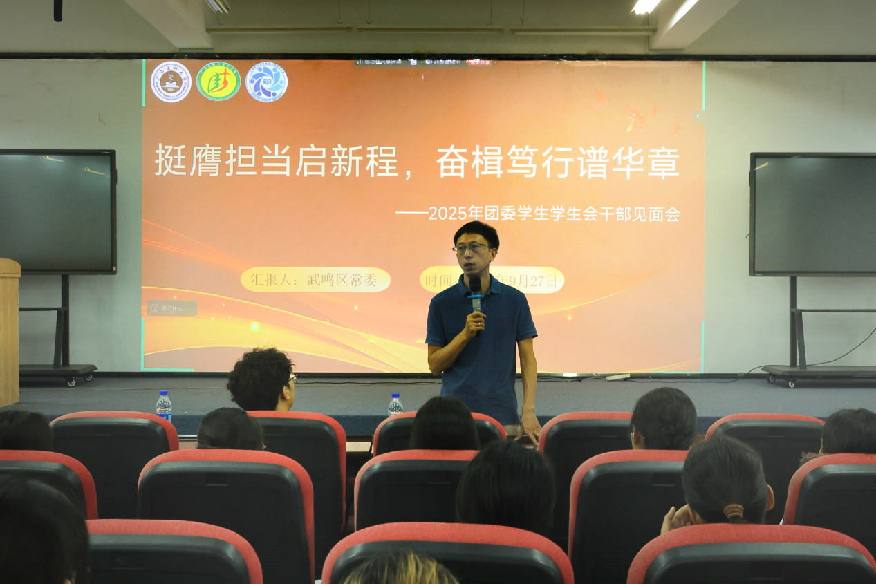 会上,谭斌对加入学生会的新成员表示欢迎,指出学生干部是学院联系同学的纽带和校园文化建设的重要力量,希望大家能平衡好学习和工作,在实践中锤炼责任担当,共同推动学生会工作再上新台阶。随后,施承以“勤学善思,争做新时代好青年”为主题进行专题培训,她结合《普通高等学校学生会章程》等制度文件,阐述了学生会的组织定位与宗旨任务,强调了学生会干部的服务与模范角色。她要求全体干部应强“三性”、去“四化”,具备坚定的政治立场与出色的业务能力,并倡导大家发扬“向日葵”精神,将个人成长融入集体发展,以身作则服务同学。
