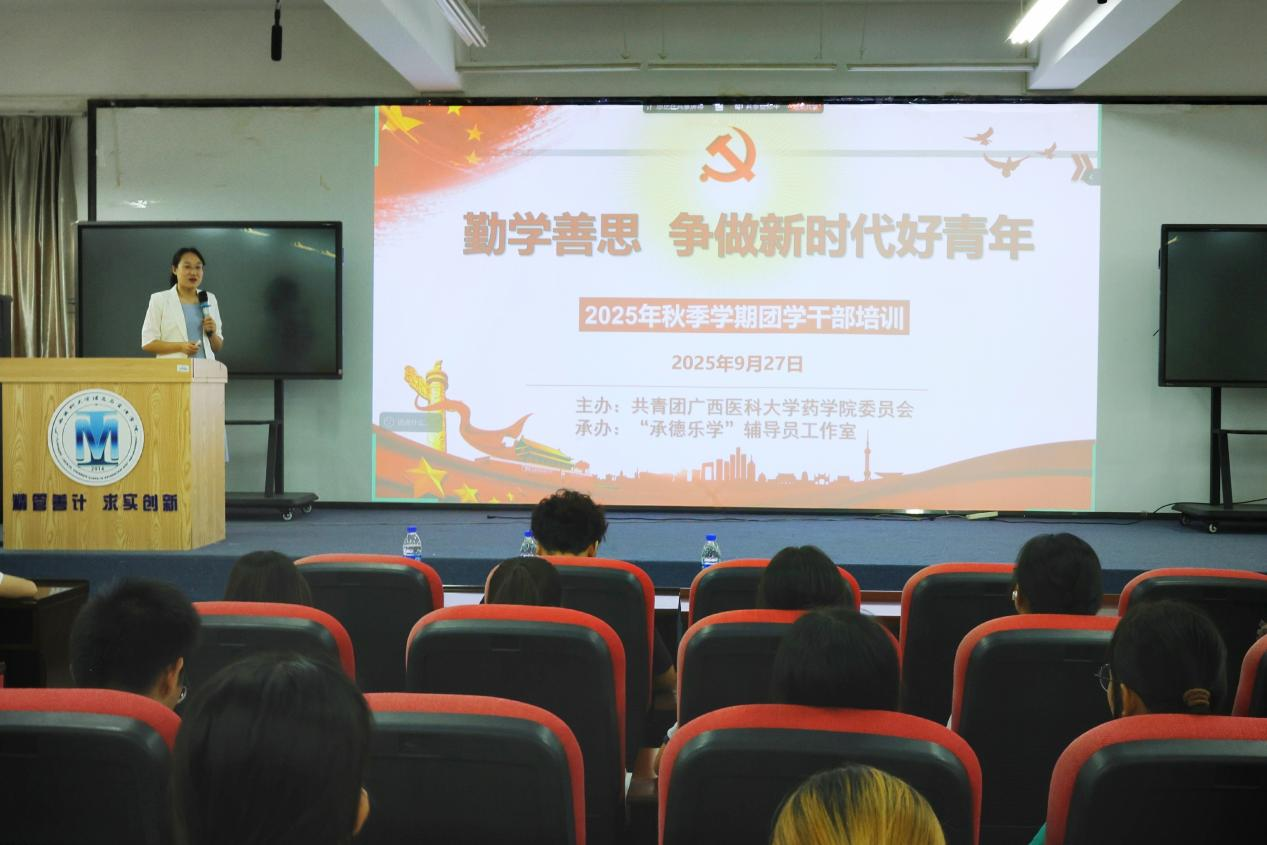 为全面提升团学干部的综合素质能力,9月27日上午,药学院在武鸣校区A8-1-301会议厅召开秋季学期团学干部培训会。药学院团委书记施承、学工办主任谭斌及全体团学干部共同参加了本次会议,会议由赖家宝同学主持。