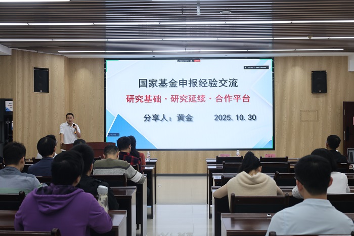 随后,我院2025年度国家自然科学基金面上项目及地区科学基金项目获得者黄金教授,围绕“研究基础、研究延续、合作平台”三个方面进行基金申报经验分享。他提出,在研究基础方面,系统梳理已有科研成果,聚焦特色与创新,筑牢坚实根基;在研究延续性上,建议深耕核心方向,形成连贯研究脉络;在合作平台方面,鼓励整合校内外优质资源,加强与高水平团队协同攻关,切实提升项目竞争力。