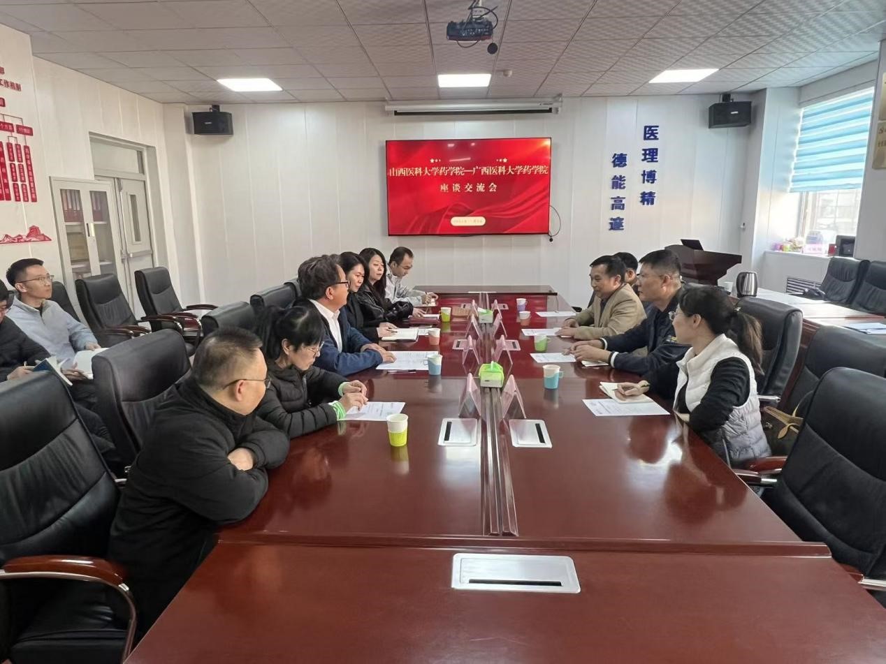在山西医科大学药学院,双方围绕“党建引领育人”主题召开座谈会。山西医科大学药学院党委书记李薇详细介绍了该院“党建+专业”特色育人模式,分享了课程思政与学科发展、科研创新深度融合的实践经验。两院学生工作部门负责人就学生就业创业指导、实践创新能力培养、校园特色文化活动等议题展开深入交流。