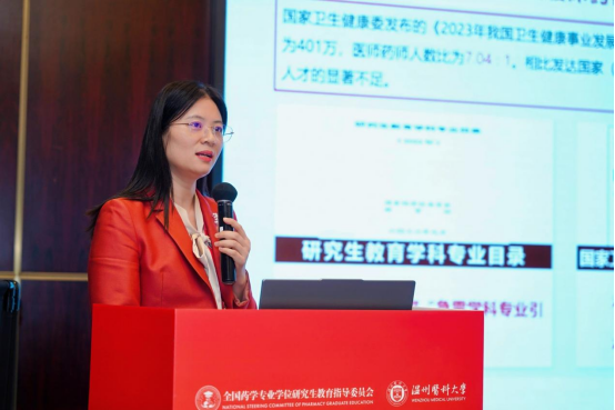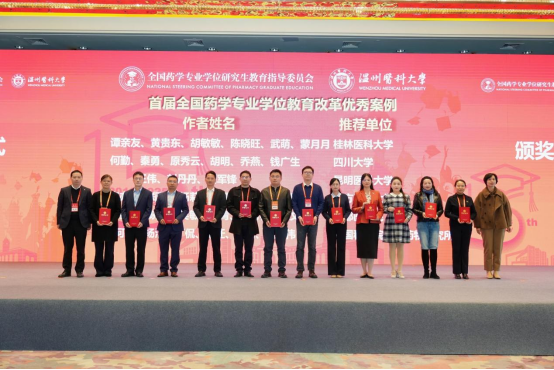 大会对 2024 年全国药学专业学位研究生精品课程结项成果、第八届优秀教学案例及首届教育改革优秀案例进行表彰。阳洁教授作为负责人的药学专硕研究生教学改革成果《临床药师 “3C” 胜任力培养模式创新与实践》获首届全国药学专业学位教育改革优秀案例,黄建春教授作为负责人的《药事法规》课程获 2024 年全国药学专业学位研究生精品课程结项成果。