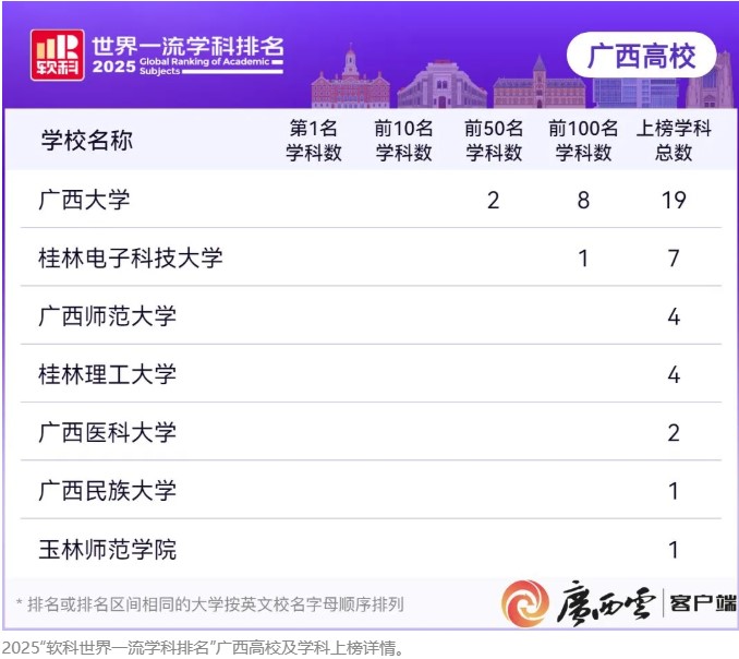 本次软科世界一流学科排名新增人工智能、机器人科学与工程两大领域,涵盖理学、工学、生命科学、医学等五大领域共 57 个学科,吸引全球 3000 多所大学参与角逐,最终仅2000余所高校的近2万个学科点入选榜单。广西医科大学作为广西医学领域的领军高校,共有2个学科跻身榜单其中药学学科的成功上榜,是对学校在该领域教学科研、人才培养与社会服务的高度认可。