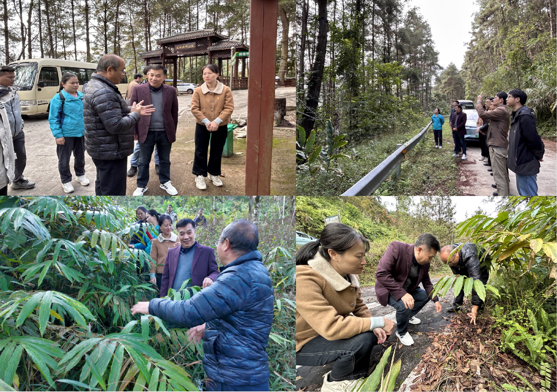 次日,全体人员前往靖西市五岭林场中药材种植基地,实地察看了鸡血藤、砂仁、金线莲等特色药材的林下种植情况。基地负责人系统介绍了种植规模、种源培育、生态管护技术及产业链发展前景。党员们就种植管理、产业瓶颈、科技赋能等方面与基地人员进行了深入交流,共同探讨中医药产业助力乡村振兴的有效路径。
