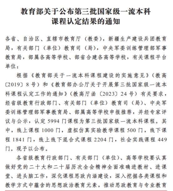 学院始终将课程建设与师资培育置于人才培养核心,持续加大投入、完善机制。截至目前,学院已获批国家级一流本科课程3门、省级5门及省级课程思政示范课程2门,形成了多层次高质量课程体系。《药剂学》获国家级认定,是对课程团队及我院课程育人和专业建设的充分肯定。学院将以此为契机落实教育强国部署,发挥示范引领作用,共享优质资源,夯实高素质药学人才培养教学根基。