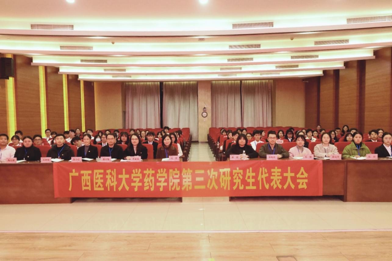 2026年1月6日,广西医科大学药学院第三次研究生代表大会在校本部卓越楼21楼报告厅顺利召开。药学院党委副书记林晓、副院长何萍、研究生院及兄弟学院管理人员代表、校研究生会代表及学院研究生代表出席会议。