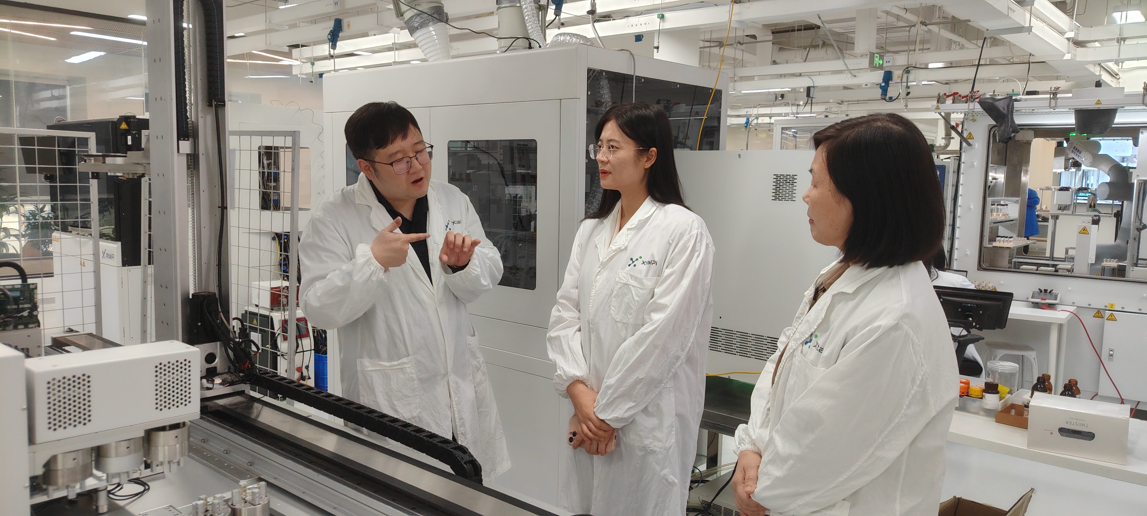 随后,交流团队赴深圳晶泰科技有限公司开展合作交流,与晶泰科技副总裁刘卫东、自动化事业部首席科学家杨明俊、自动化事业部南区商务总监王珺琭等核心团队成员展开座谈交流。会上,晶泰科技团队详细展示了智能药物研发平台的技术应用现状,分享了人工智能赋能药物研发的创新实践与行业经验,并围绕智能药物研发平台本地化部署等核心议题展开深入探讨。座谈结束后,交流团队实地参观了公司人工智能药物研发中心及智能自动化实验室,近距离感受了智能化、自动化技术在药物分子设计、研发等环节的高效应用。
