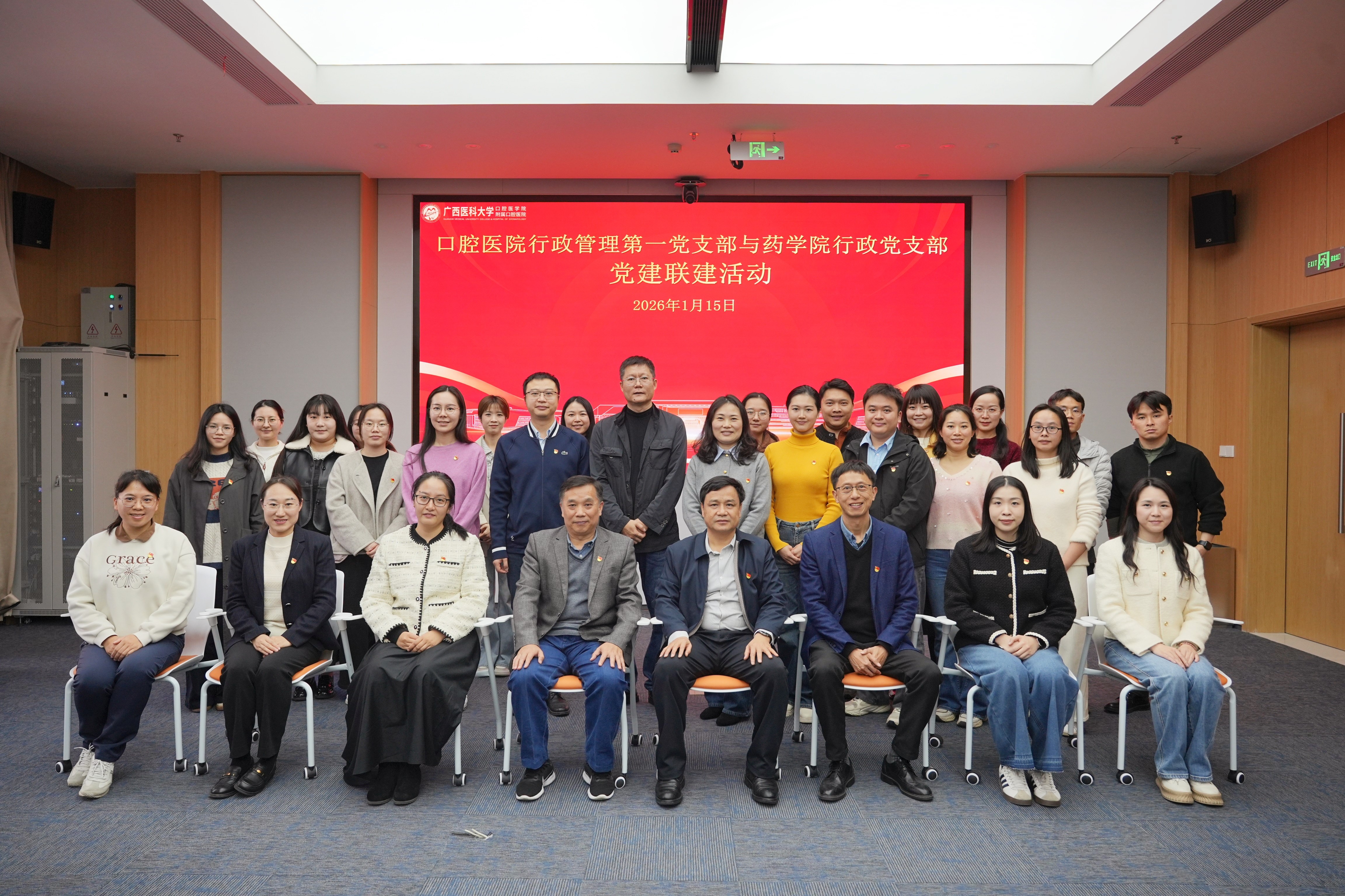 为进一步拓展党建+业务融合发展新路径,拓宽毕业生就业渠道,深化与附属医院的协同合作,1月15日,药学院行政党支部赴广西医科大学附属口腔医院五象院区,与医院行政管理第一党支部开展联建活动。附属口腔医院党委书记韦锦斌、药学院党委书记文秋林及相关支部党员、科室代表共同参与。