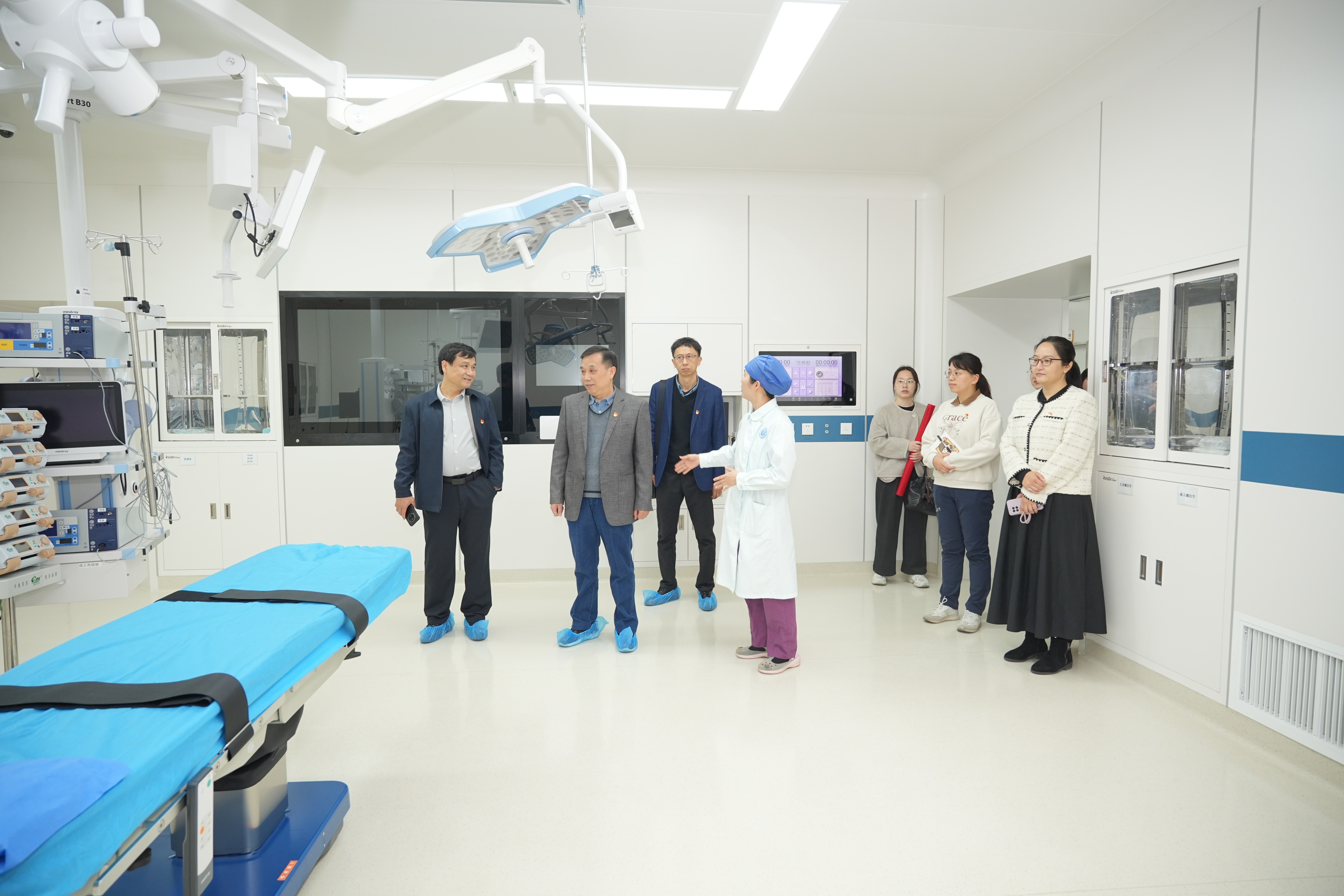 在医院领导陪同下,药学院一行参观了五象院区诊疗区域、教学科研平台和行政管理区域。参观过程中,双方就学科发展布局、医疗服务质量提升、药事管理服务等方面展开现场交流。