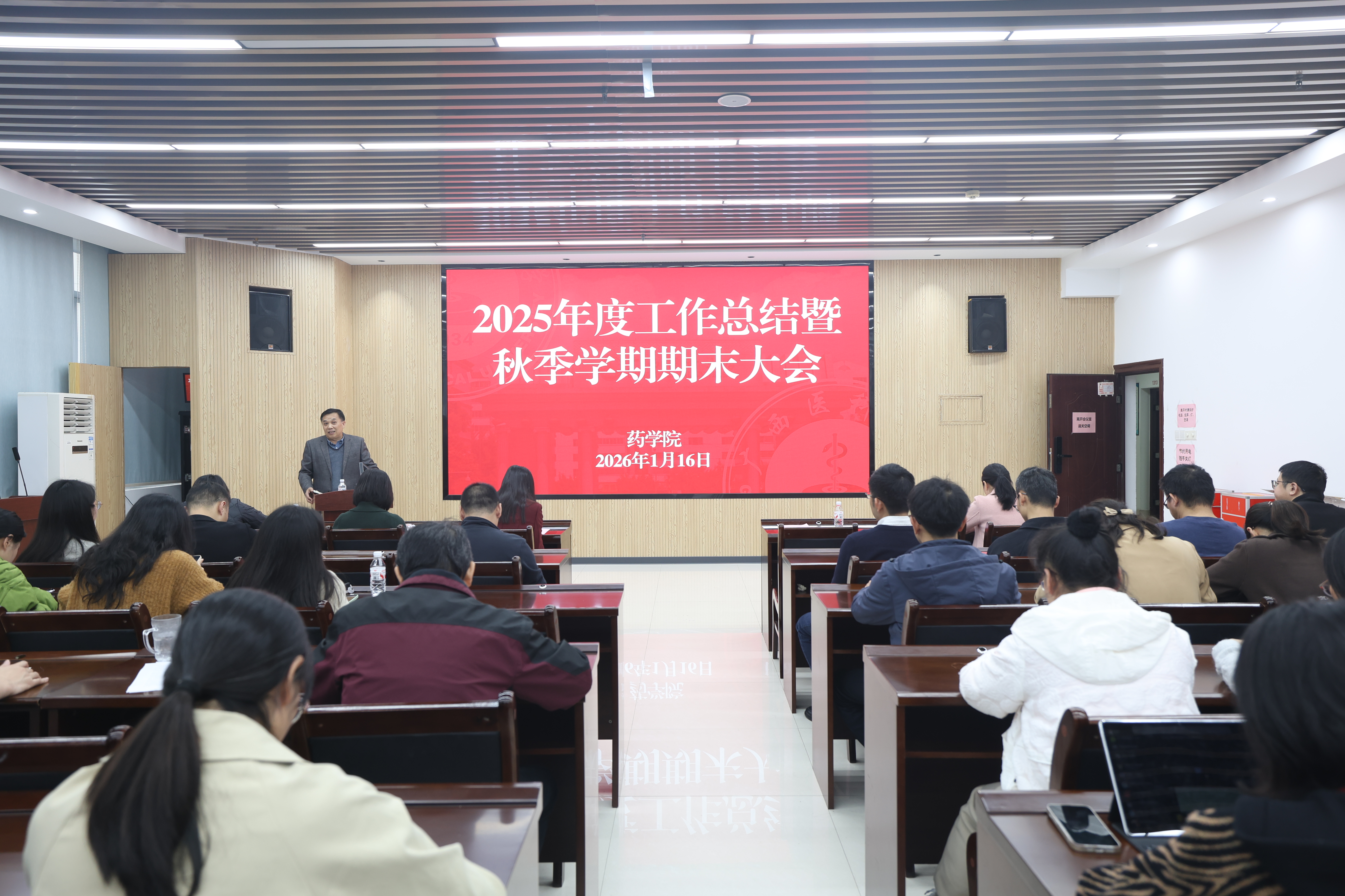 岁序更替,华章日新。1月16日下午,药学院在药基楼1310多功能厅召开2025年度工作总结暨秋季学期期末大会,全面盘点发展成果、系统谋划奋进路径。学院全体教职工及博士后代表齐聚一堂,共叙过往耕耘、共商未来篇章。会议由学院党委副书记林晓主持。