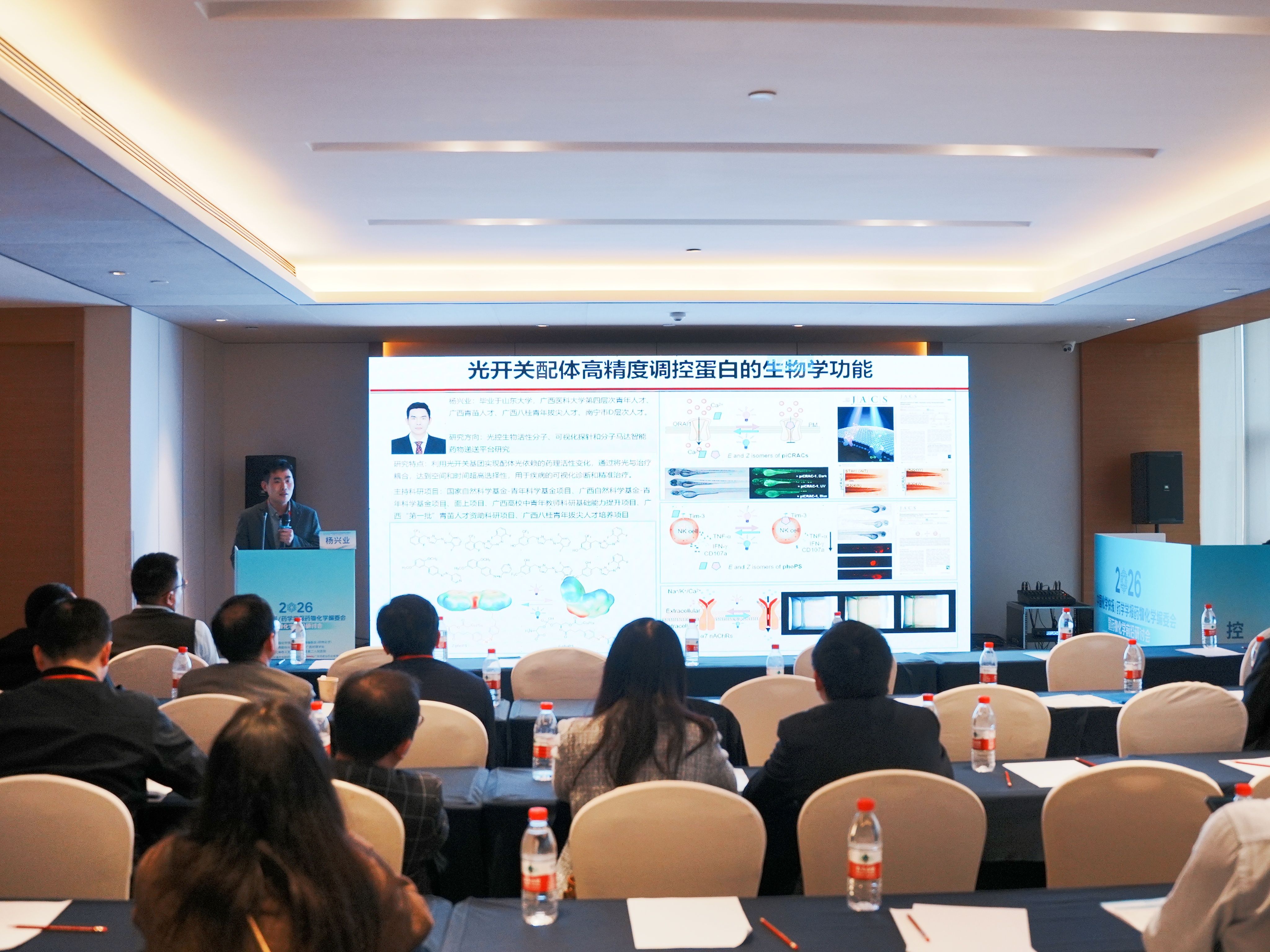 会议期间,中国工程院陈芬儿院士等8位专家作主旨报告,内容涵盖药物化学前沿进展与创新路径。两个分论坛中,40余位中青年学者围绕热点议题展开深入交流,现场学术氛围浓厚。我院院长、广西药理学会理事长阳洁教授主持了分论坛,药学院杨兴业博士分享了光驱动药物创新研究进展。